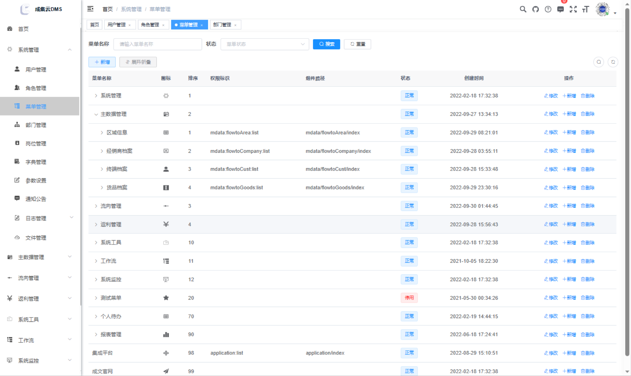 - 用于配置系统的功能菜单列表对应的页面路径和管理菜单的可见状态