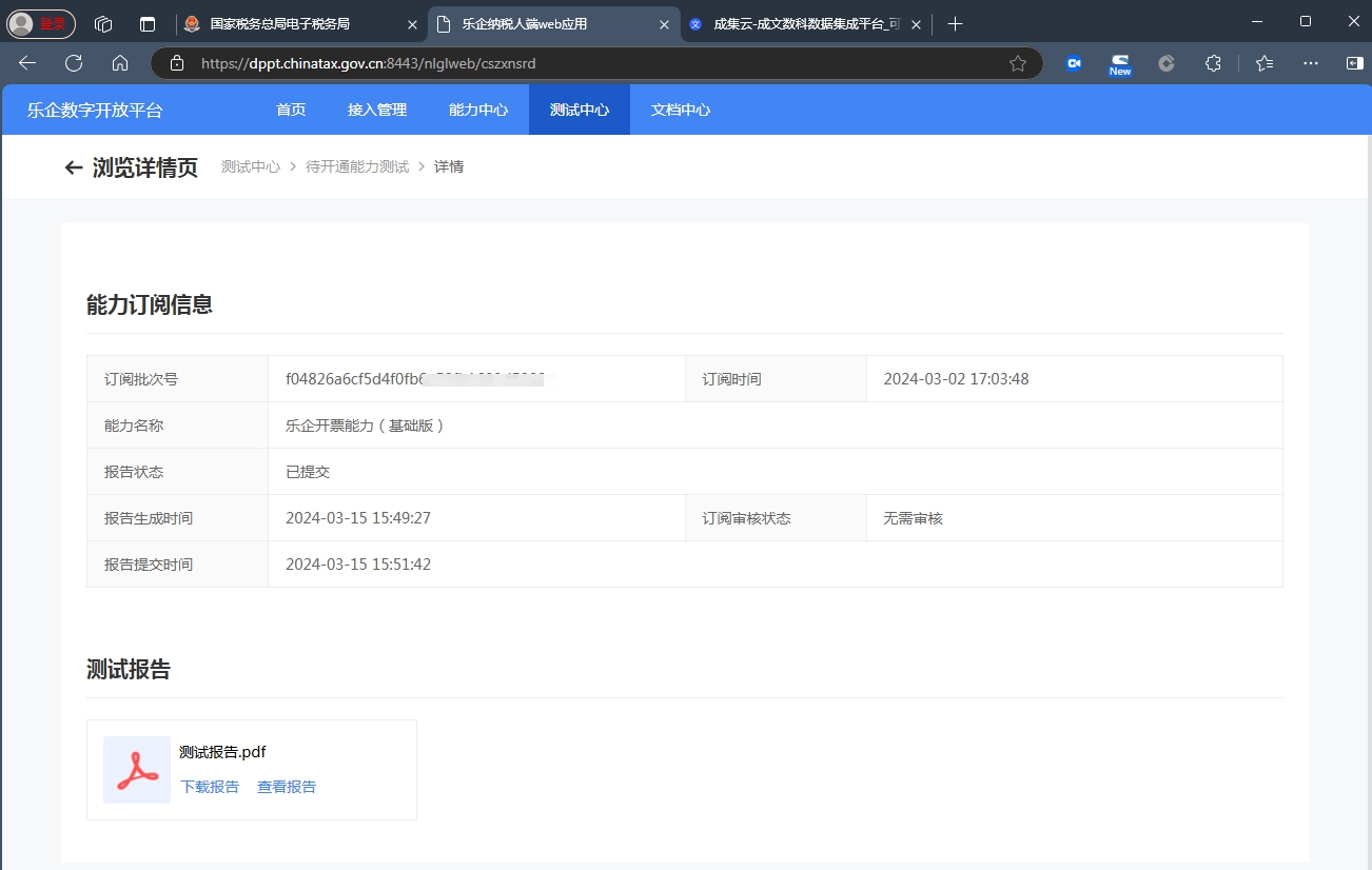 7.能力订阅开通申请提交成功后,状态变更为“待测试”。