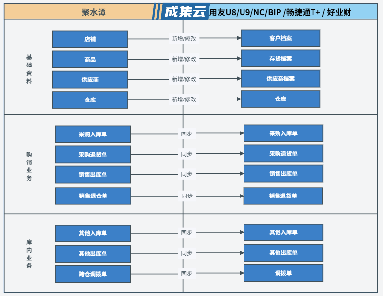 聚水潭ERP完成所有供应链业务单向同步到用友ERP进行成本核算和生成财务凭证: